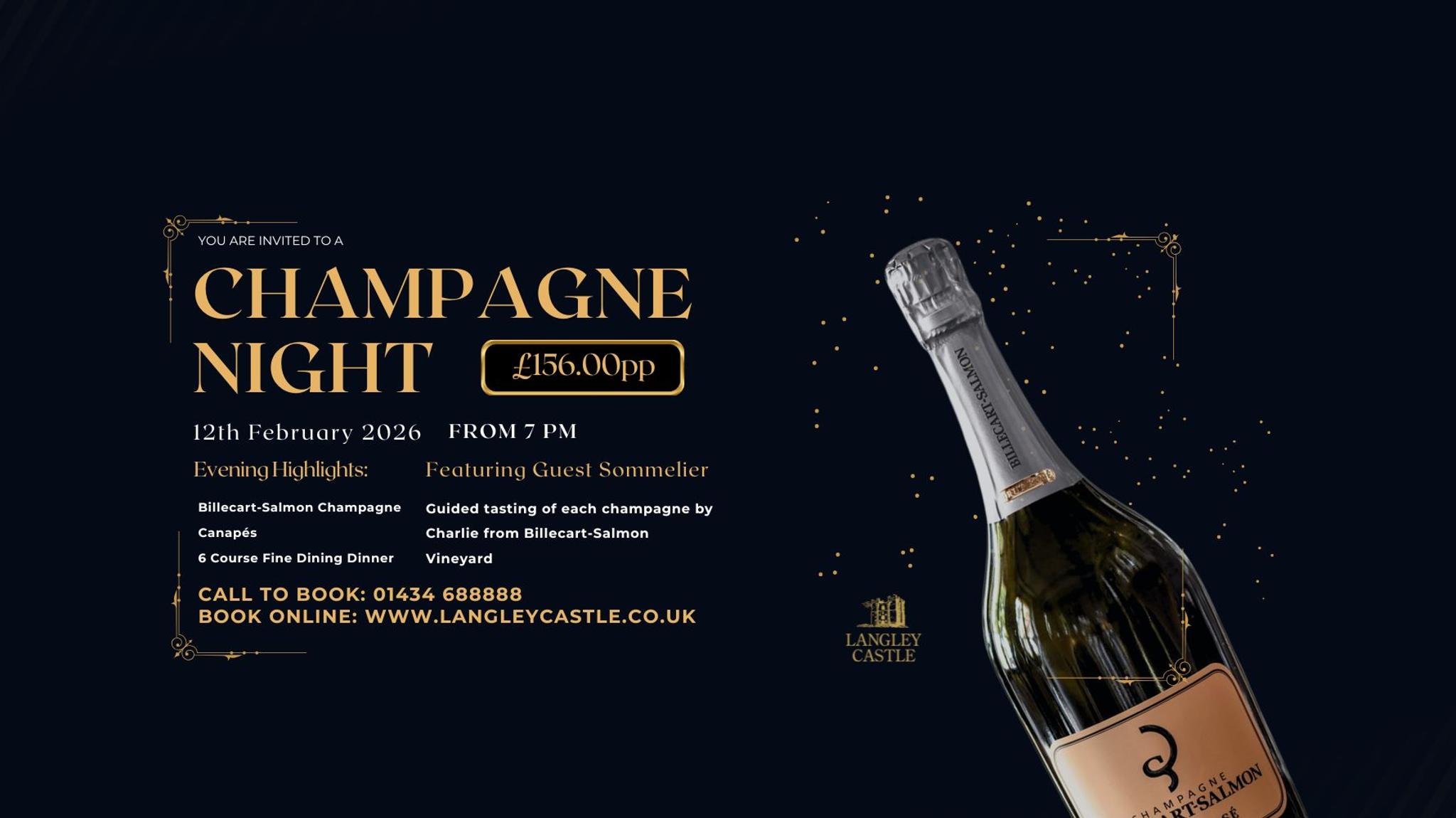 Ease into Valentine’s with an intimate, candle-lit dinner at the historic, award-winning Langley Castle Hotel. Taking place Thursday, 12th February 2026, our exclusive Champagne Tasting offers the perfect prelude to a romantic celebration.